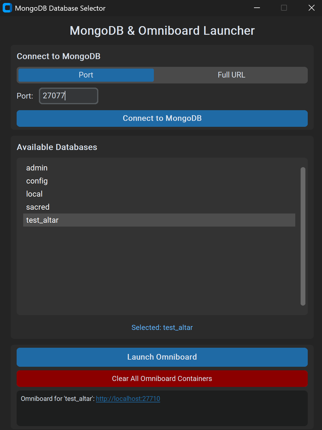 Note: Each database consistently uses the same port (hash-based), allowing your browser to remember Omniboard customizations and preferences per database
